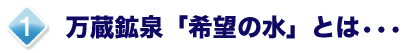 (1.免疫機能バランス改善、2.アレルギー性疾患抑制〈アトピー、ぜんそく、花粉症など〉、3.がん転移抑制)は、「万蔵鉱泉 希望の水」だけで、この名称以外に販売している水とは一切関係ありません。